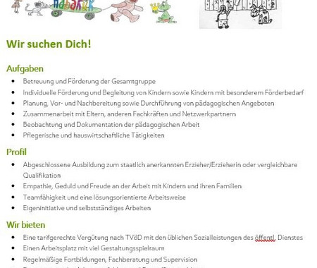 - Abgeschlossene Ausbildung zum staatlich anerkannten Erzieher/Erzieherin oder vergleichbare Qualifikation